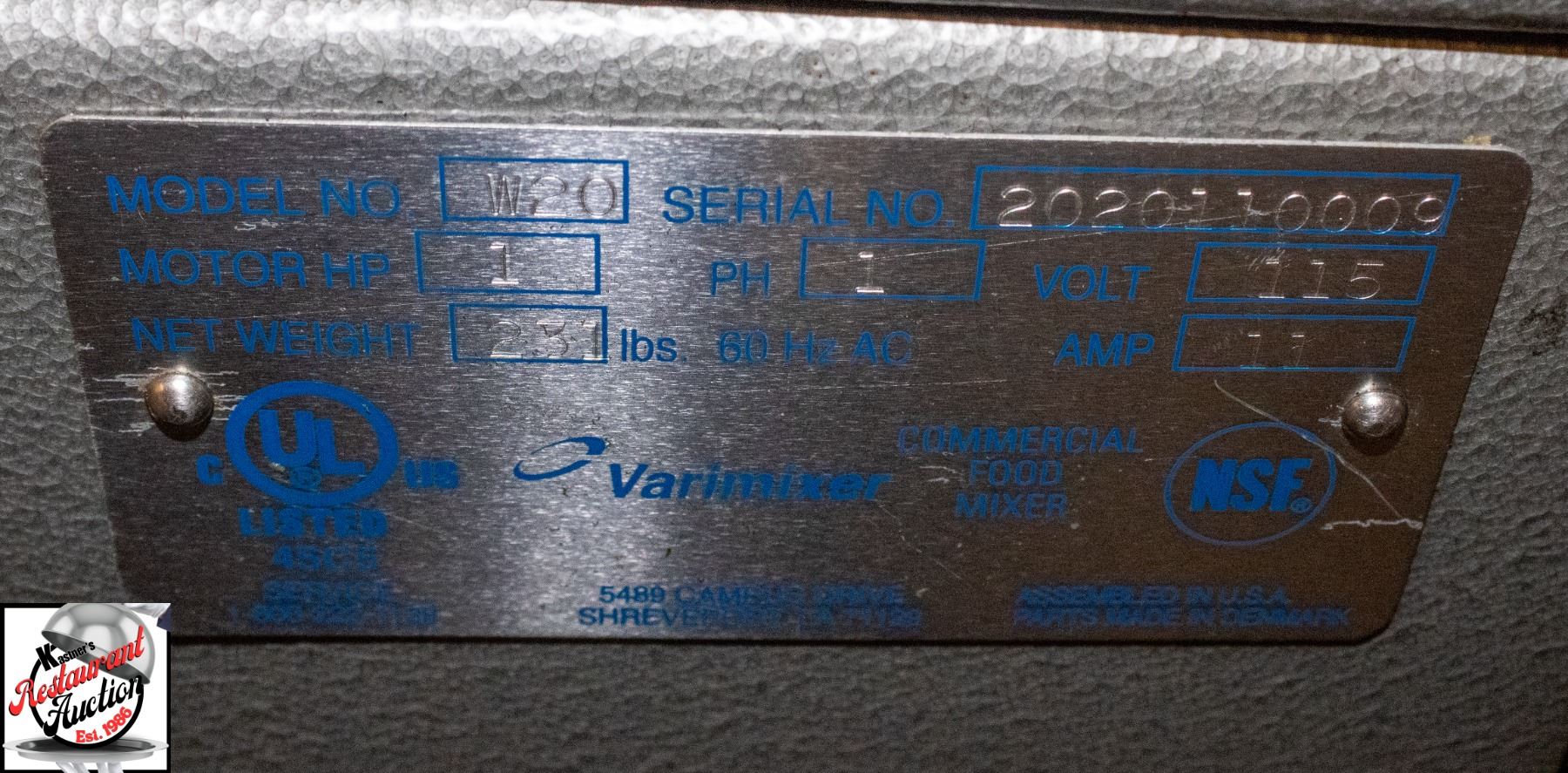 ATTACHMENT * MISSING MIXING BOWL * MODEL # W20, 1 HORSE POWER, PHASE 1, 115 VOLTS, 11 AMPS, 60 HZ, AC, 231 LBS, 23" X 10" X 35"