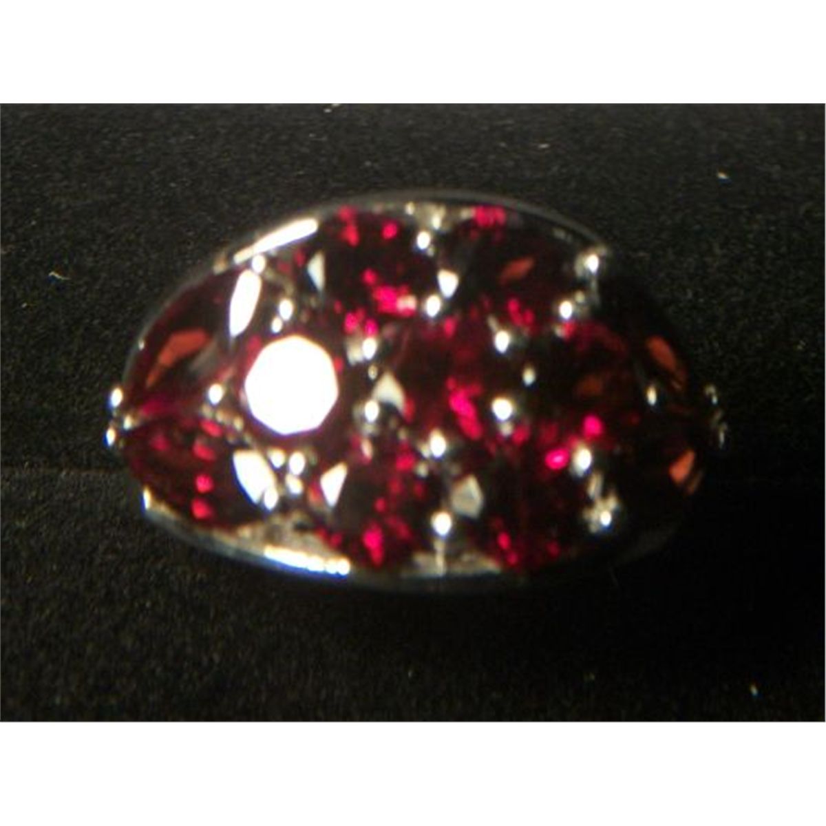 GARNET CLUSTER PLATNIUM OVERLAY SILVER RING SIZE 7