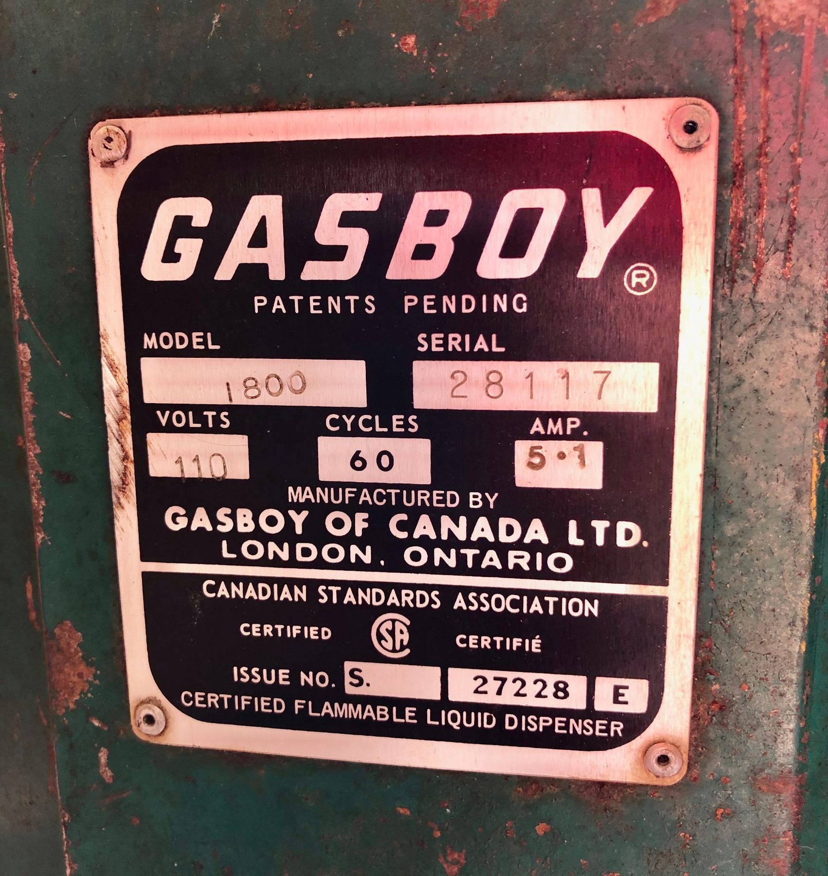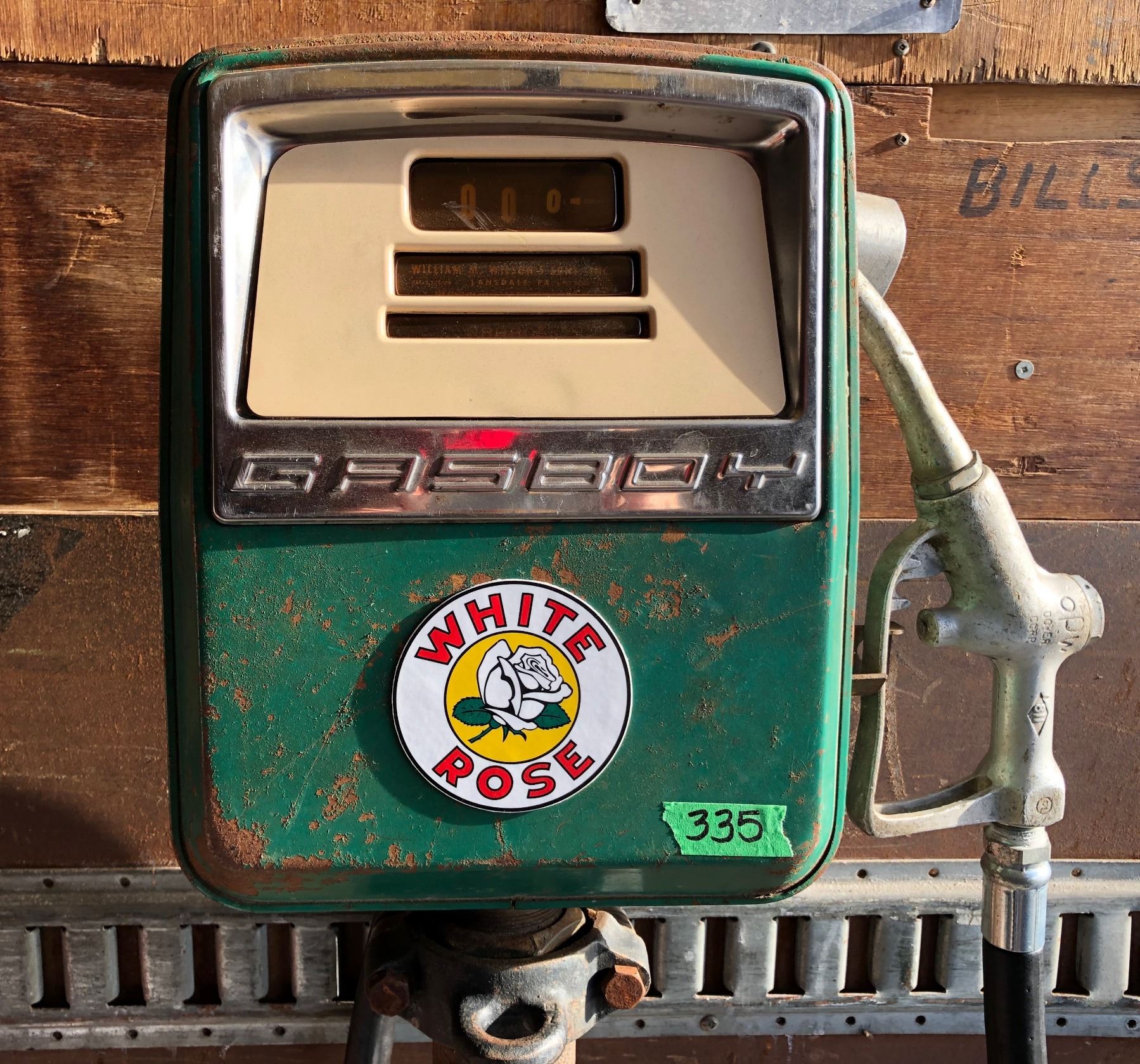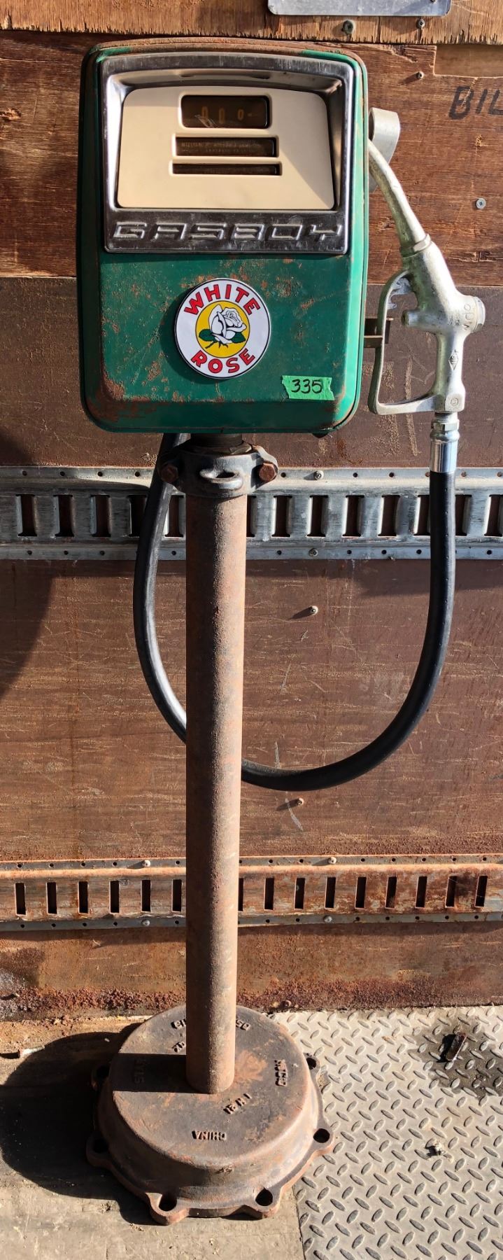 GAS BOY PUMP W/WHITE ROSE DECAL MOUNTED ON BASE