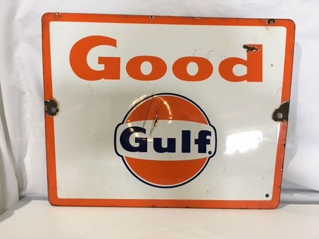 GOOD GULF, TIN, ONE SIDED, ORIGINAL, GOOD CONDITION, APPROX 10"
