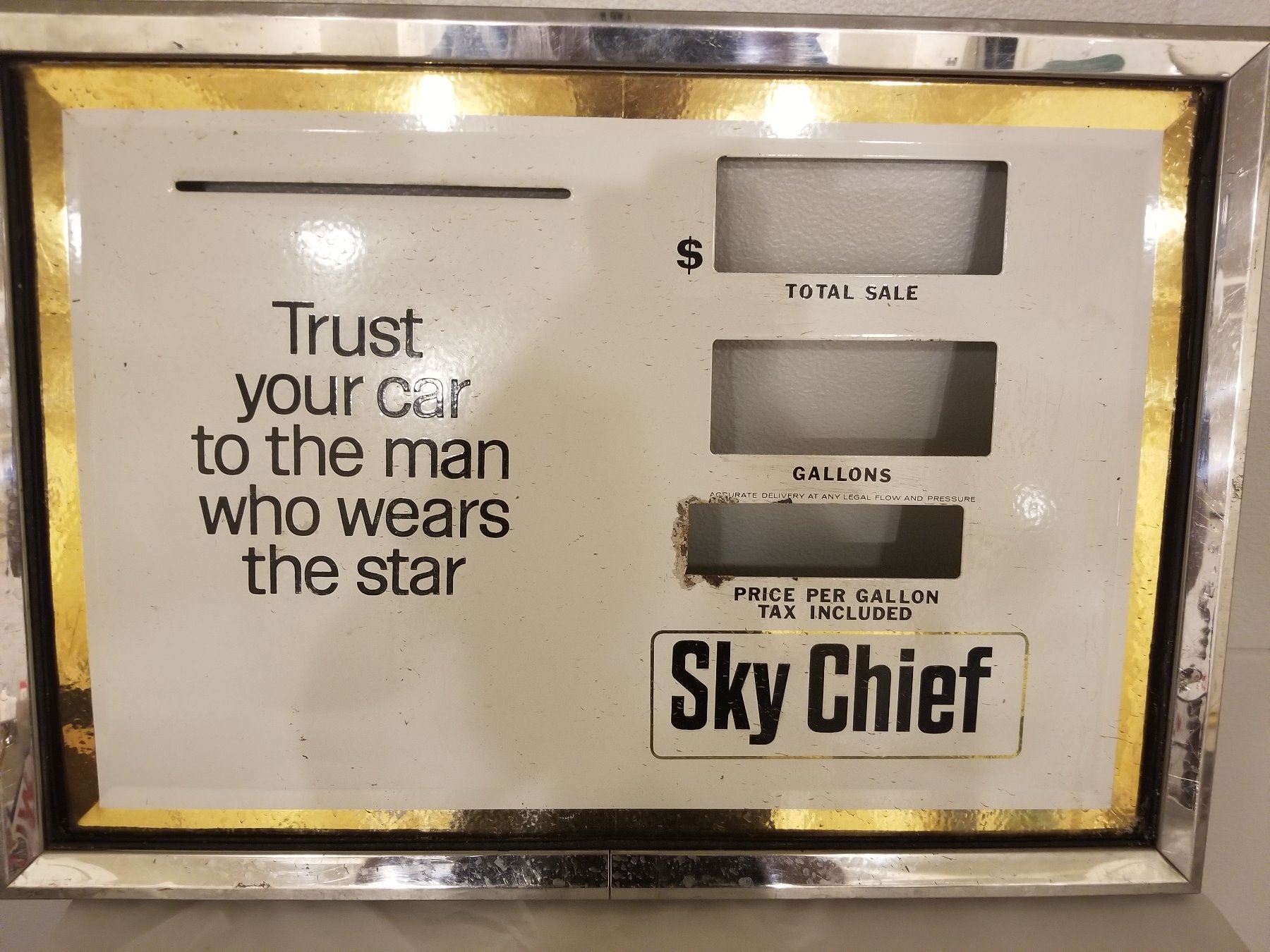 GAS PUMP FACE PLATE (SKY CHIEF) *1960s* (PORCELAIN) *26" X 18"*