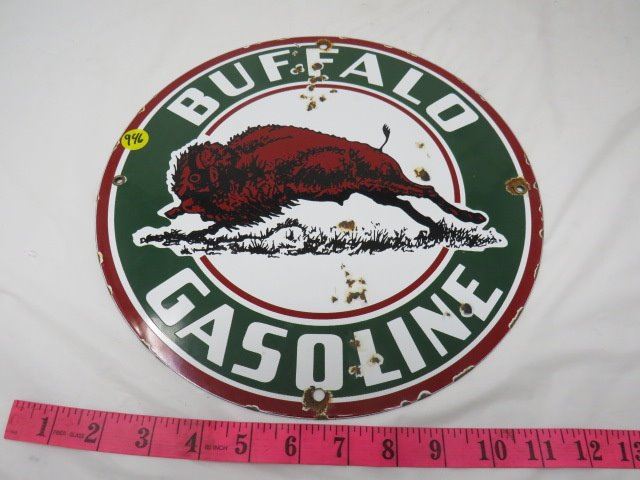 GAS PUMP PLATE (BUFFALO) *METAL* (12 IN ROUND) (REPRO)