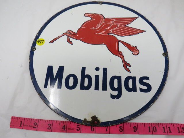 GAS PUMP PLATE (MOBIL) *METAL* (12 IN ROUND) (REPRO)