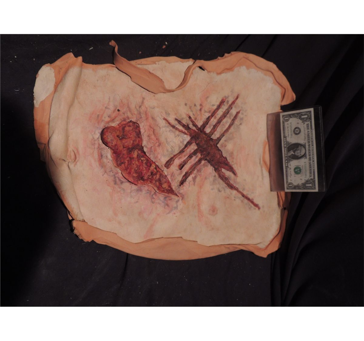 This is an unused full chest appliance with gashes and exposed entrails. Nice and supple, ready to use.