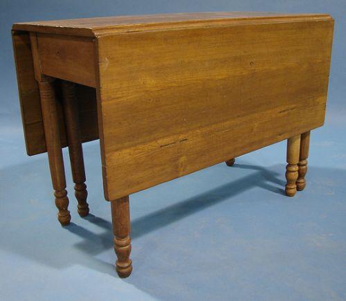 SHERATON STYLE WALNUT GATE LEG DROP-LEAF TABLE. 6 turned legs. 30” H, 42” L, 20.5” W. Each leaf: 17.5” W