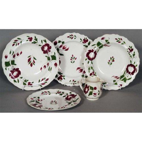 1 GAUDY DUTCH LOT five pieces, largest 10 1/2" diameter 19th century CONDITION REPORT: hairline to creamer, a few minor chips. PACKING AND SHIPPING (excluding insurance) by Fairfield Auction to points within the Continental U.S.A. and Canada (all other international must be handled by 3rd party shipper) $30.