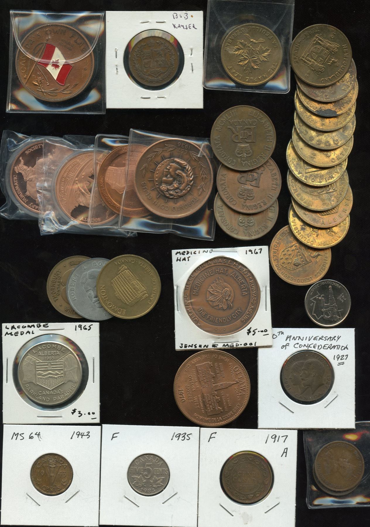 Some nice quality RCNA medals and tokens, 2 RCM Calgary 2018 RCNA Tokens and a few Canadian coins mixed in. All in a red box ready for inspection.