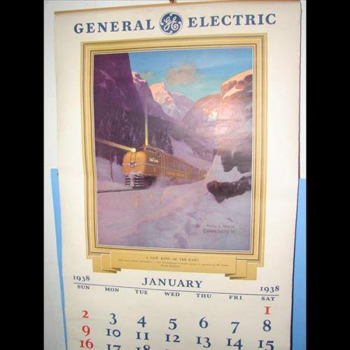 GE Calendar 1938 Trains, etc. Very graphic, very good condition. Trains etc. Art by Walter Green.