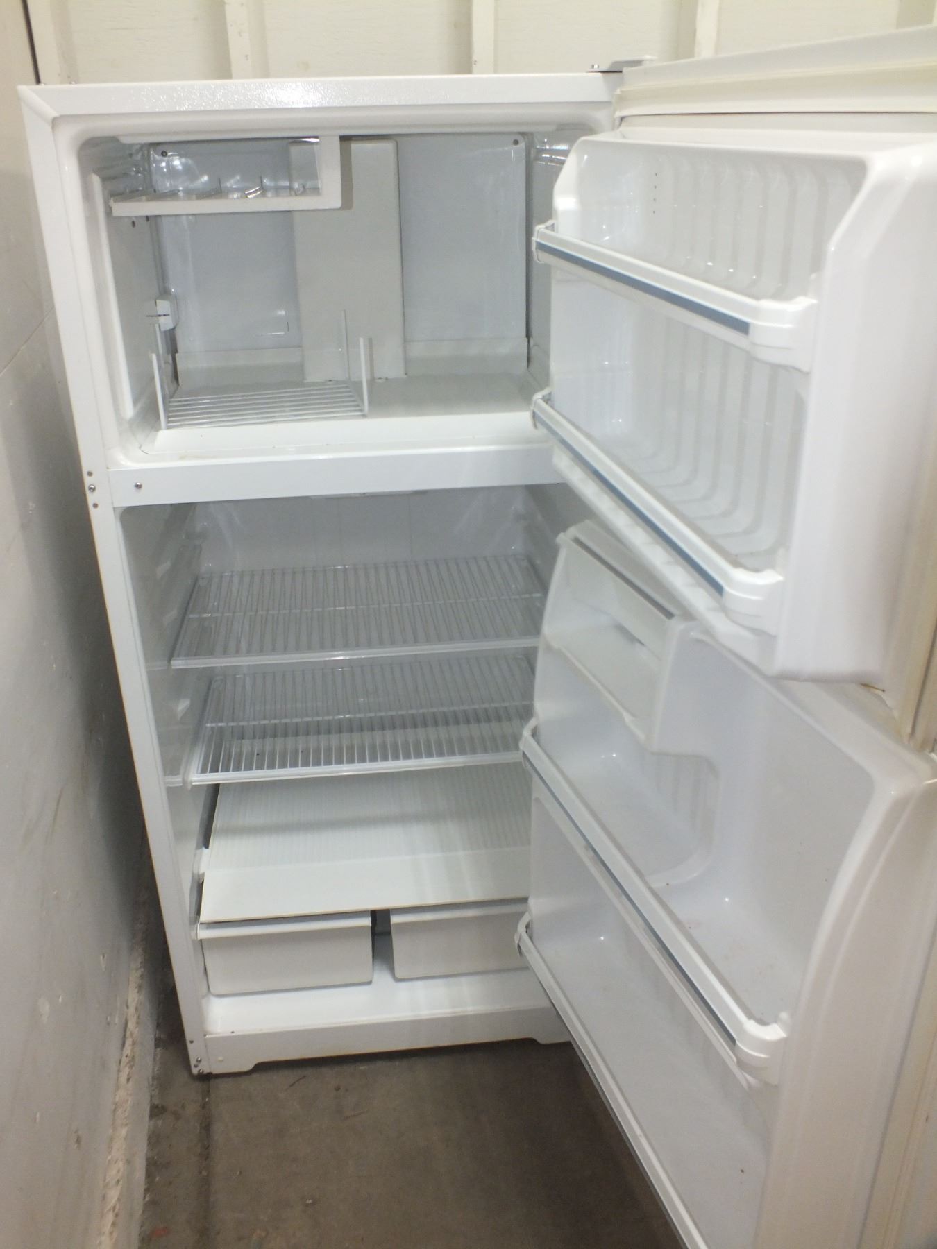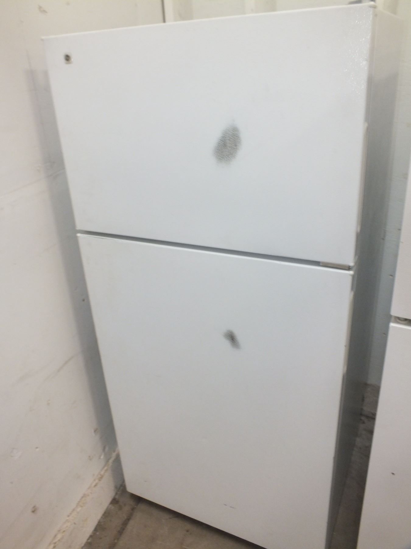 GE White Refrigerator, 28"l 27"d 61 1/2"h, in working condition...used