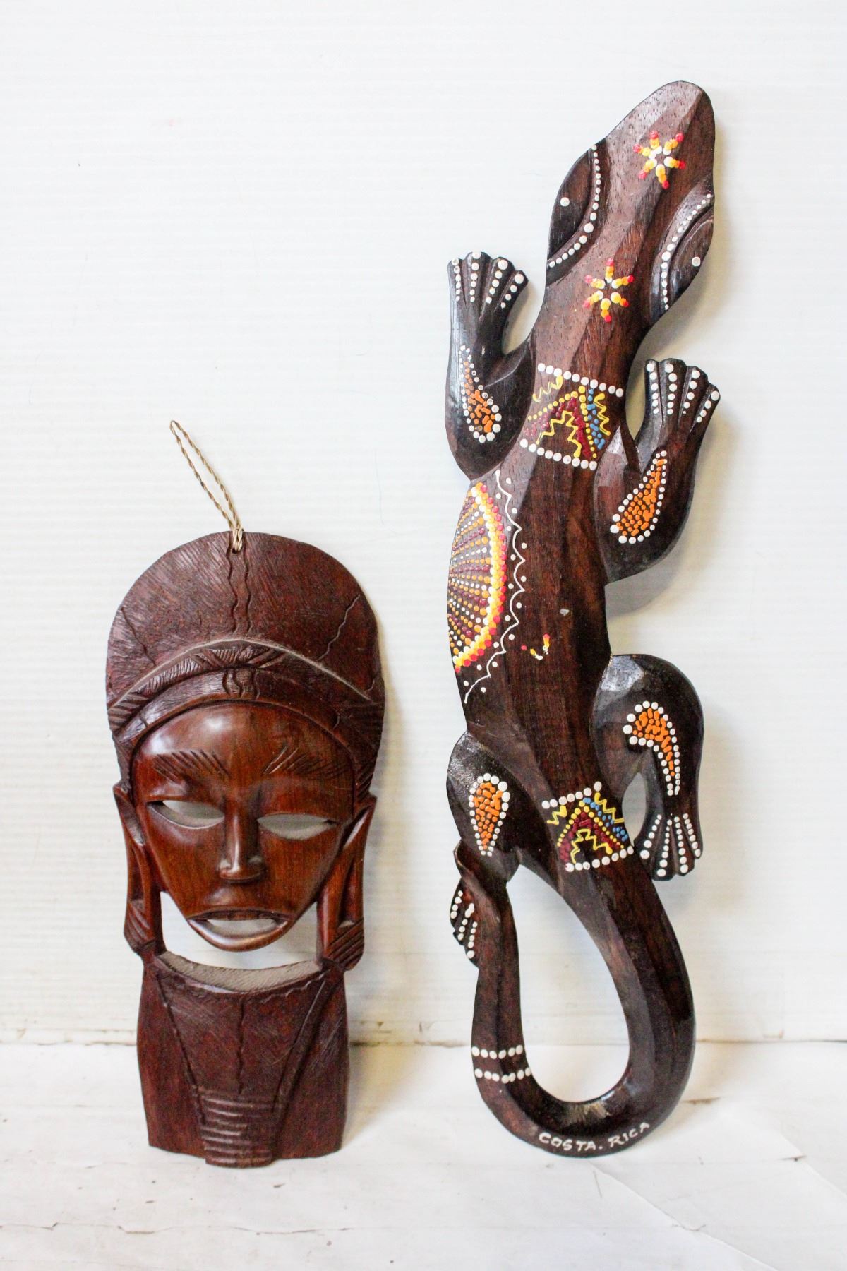 GECKO REPTILE LIZARD WOODEN & AFRICAN MASK