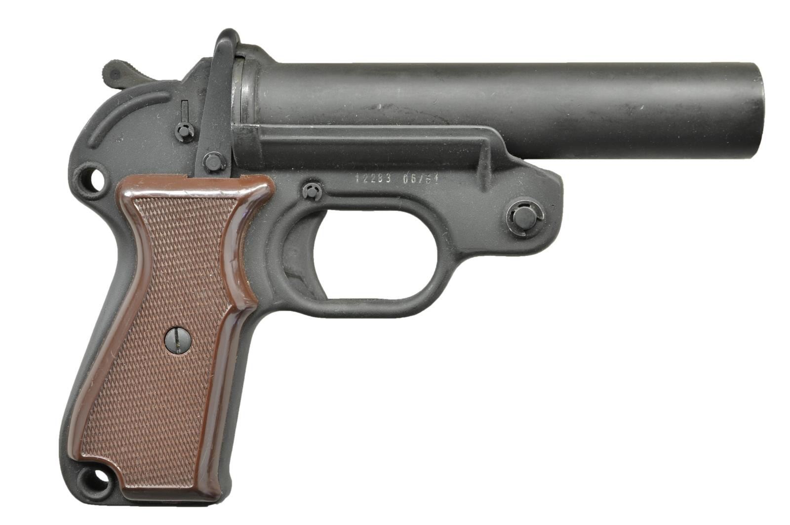 Cal. 26.5mm. S# 12283. Bbl. 6". Bead blasted black finish. 2 Piece brown synthetic grips. CONDITION: very good overall w/ light wear. Good bore. (02-16805/MD). NON GUN. $40-60.