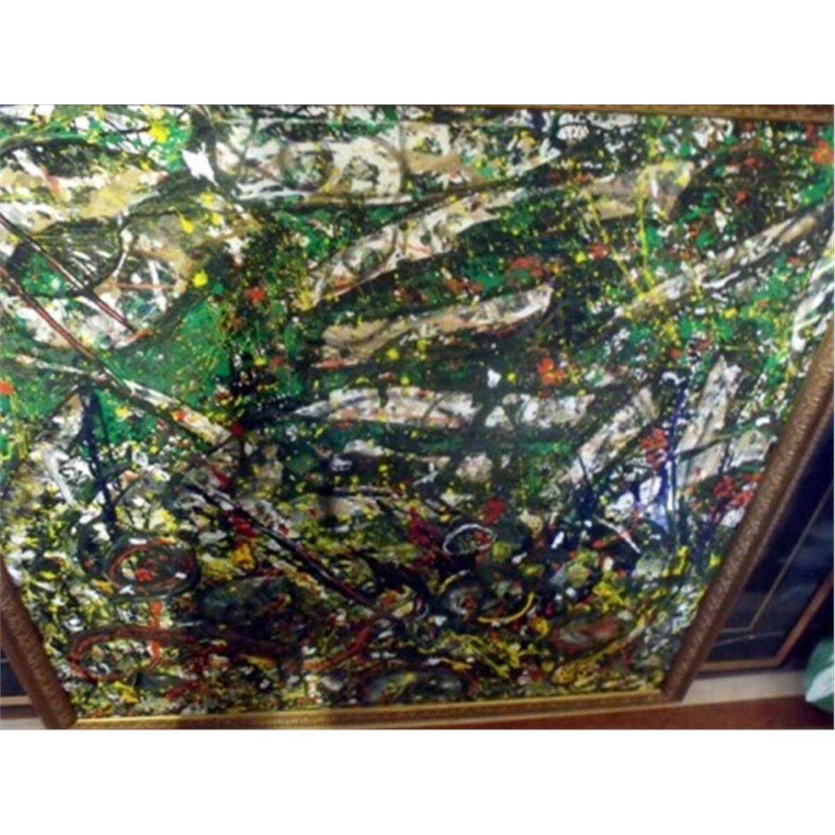 RARE ORIGINAL MIXED MEDIA ON CANVAS 53X53 FRAMED AUTHENICATED W/COA