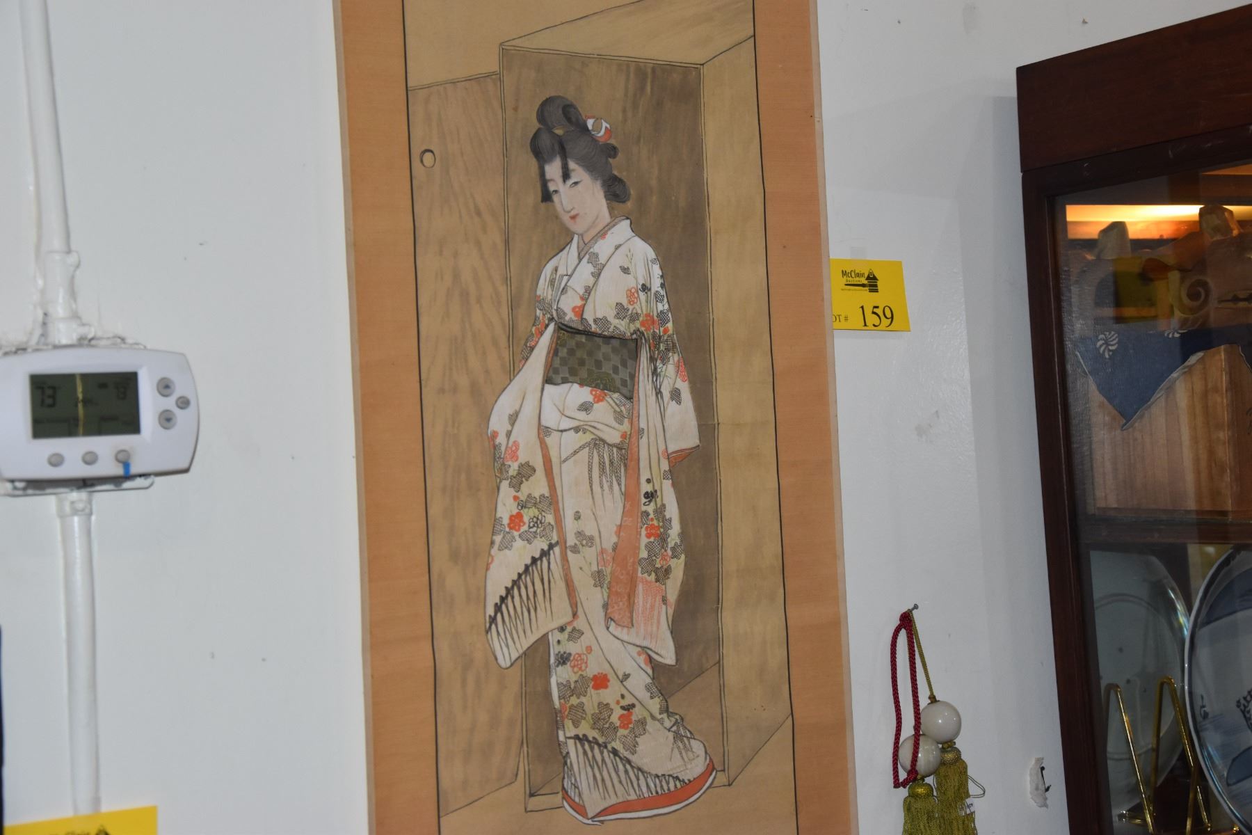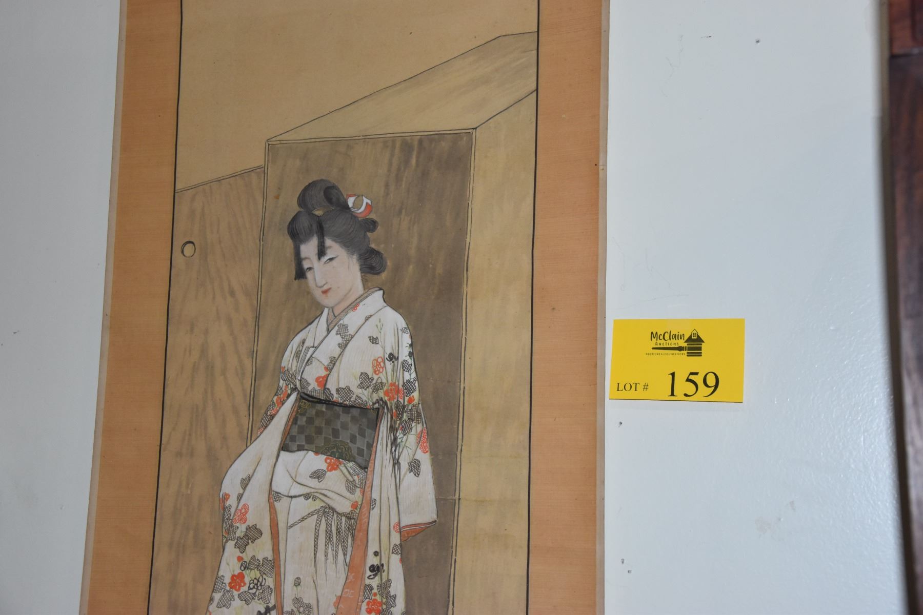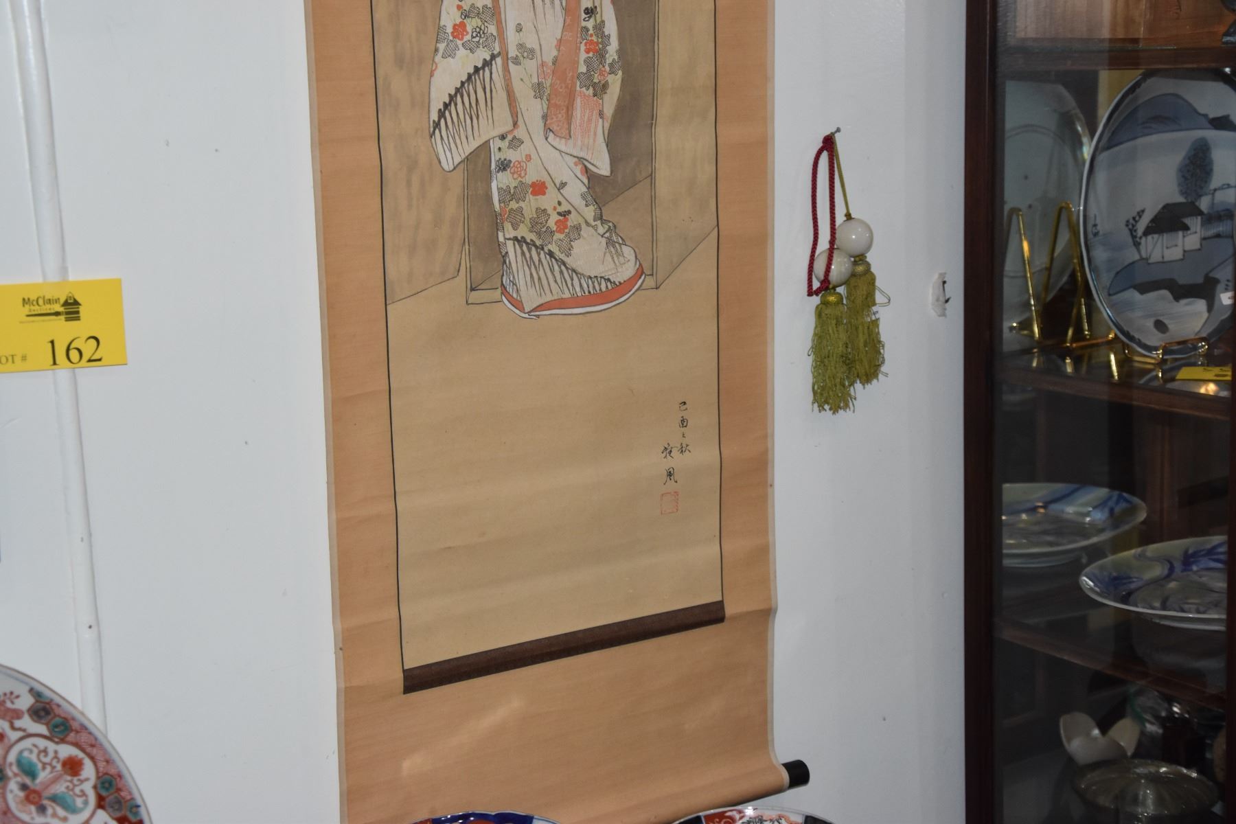 GEISHA SCROLL W/BOX & ONYX SCROLL WEIGHTS W/GREEN& GOLD TASSELS