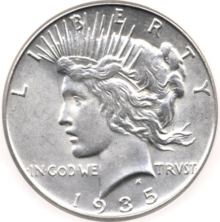 GEM 1935 US SILVER PEACE DOLLAR-MS65