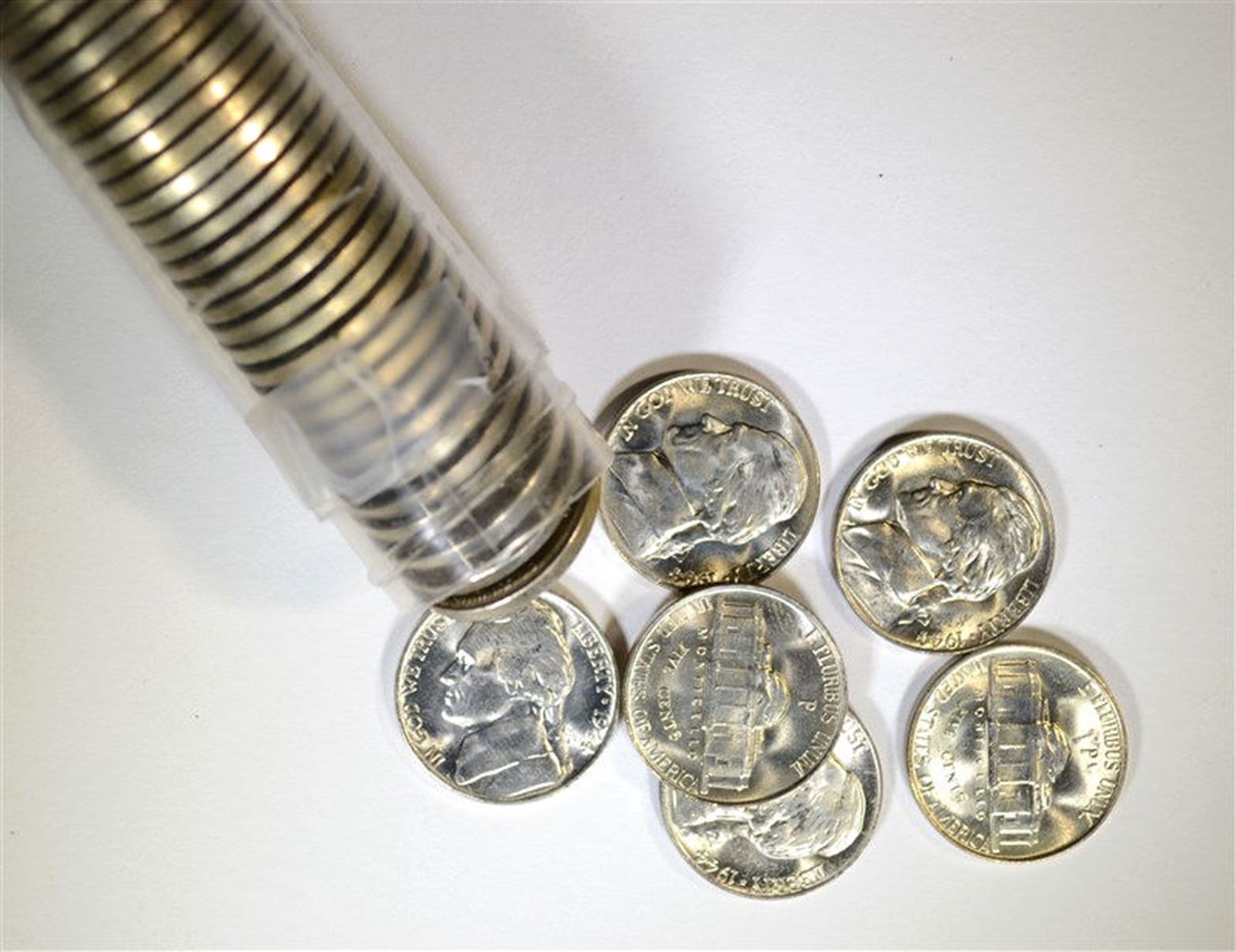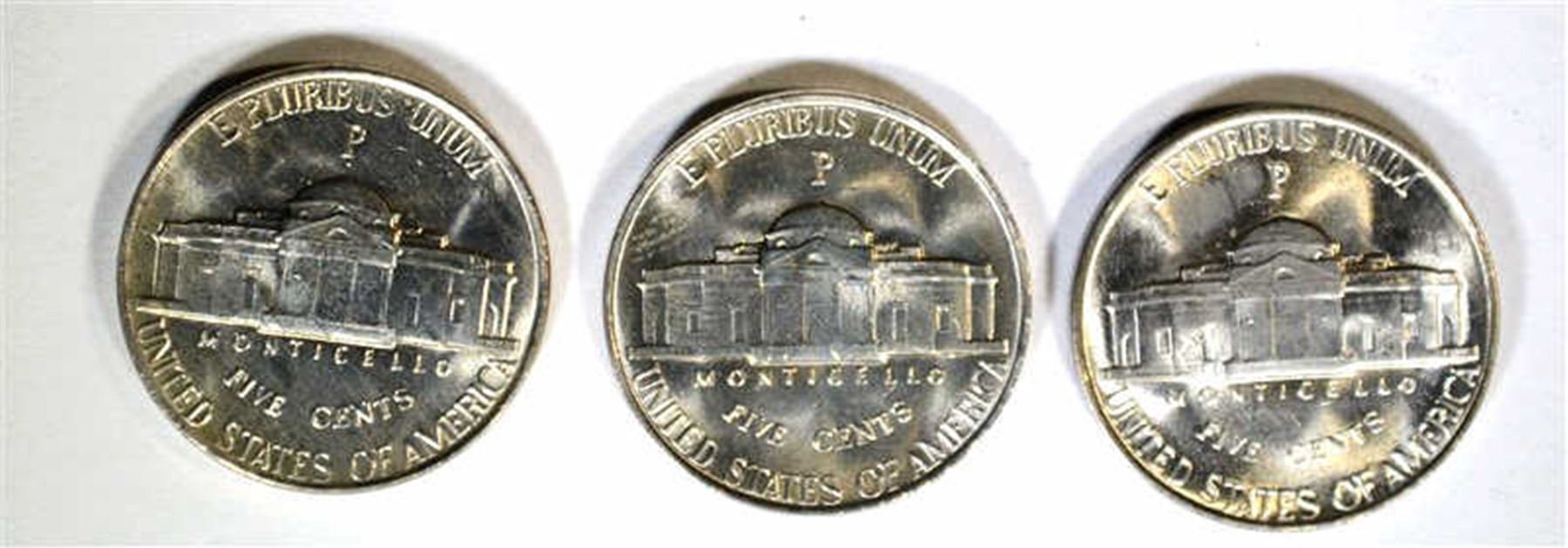 GEM BU ROLL OF 1944-P JEFFERSON SILVER WAR NICKELS ESTIMATE $650 - $750.