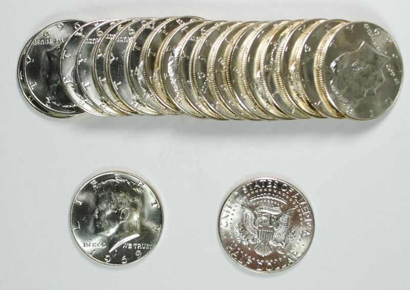 GEM BU ROLL OF 1969-D KENNEDY HALF DOLLARS
