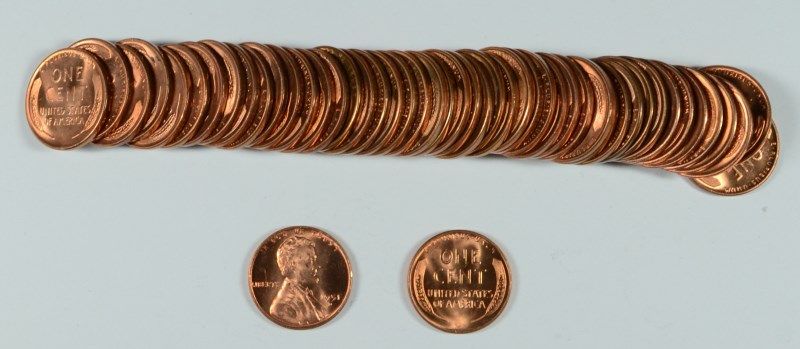 GEM BU ROLL OF LINCOLN CENTS, 1944-D, 1945-D, 1951-D