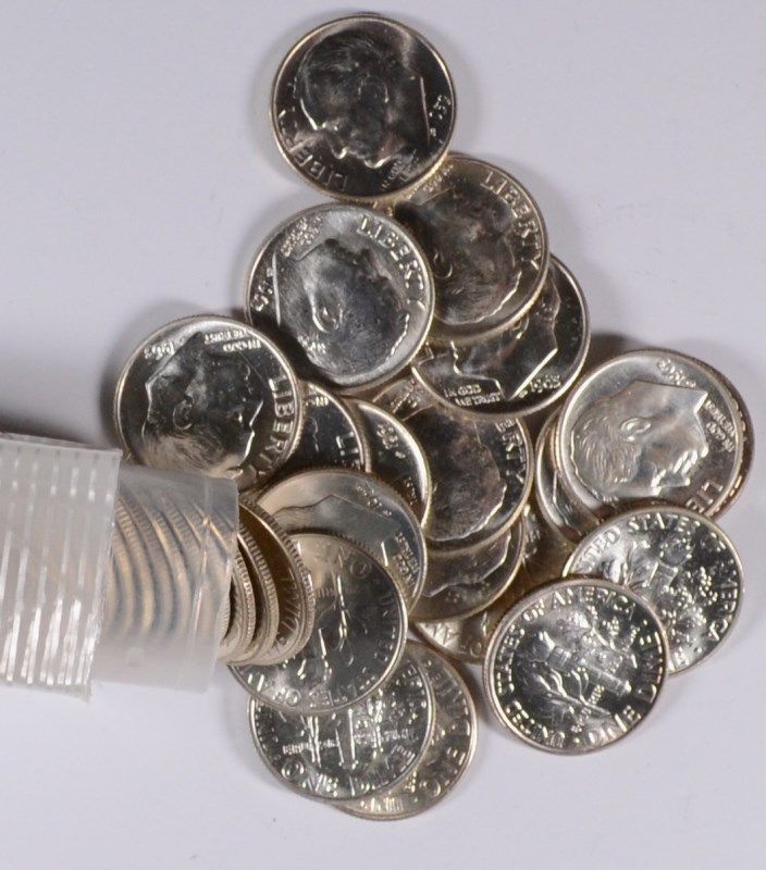 GEM BU ROLL OF SILVER ROOSEVELT DIMES, 1963 AND EARLIER