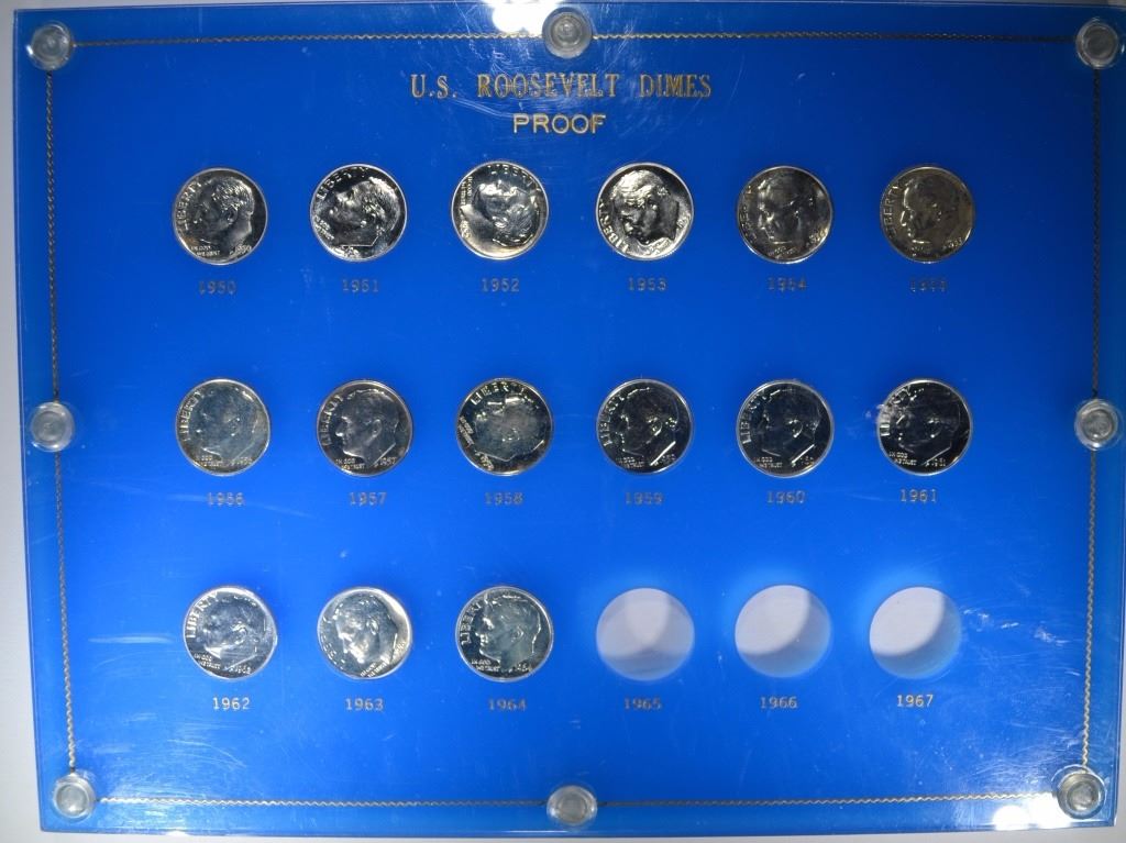 GEM PROOF SET OF ROOSEVELT DIMES IN PLASTIC HOLDER (15 COINS) 1950-1964 ESTIMATE $225 - $250.