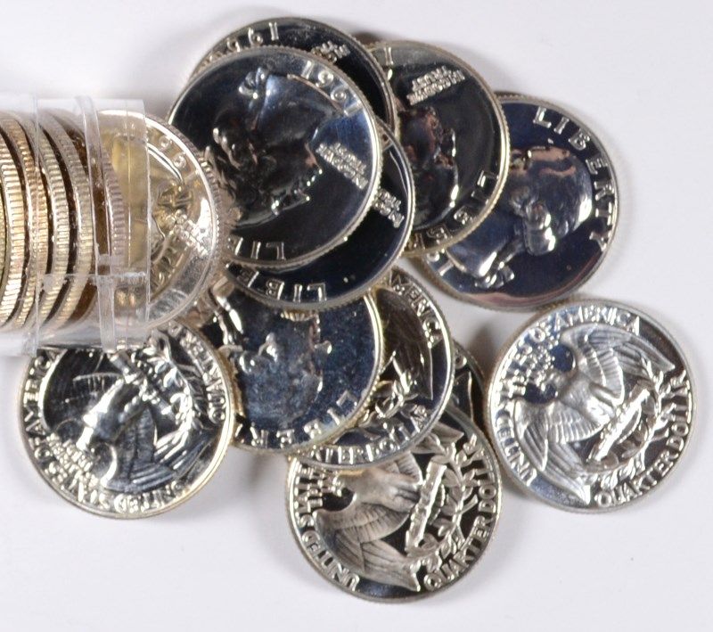 GEM ROLL OF PROOF WASHINGTON QUARTERS, DATED 1964 AND EARLIER