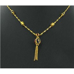 22k Gold Vermeil & Blue Enamel Necklace 16" (JEW-1985)