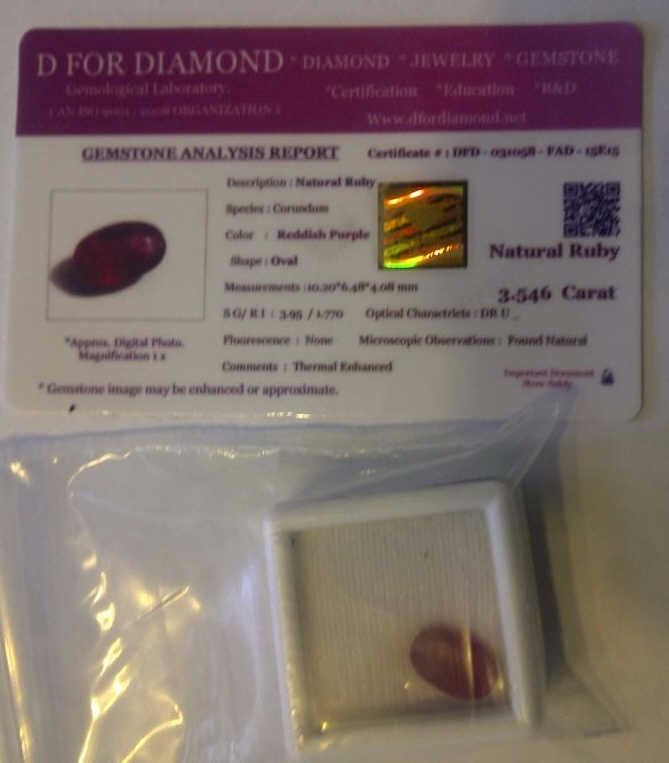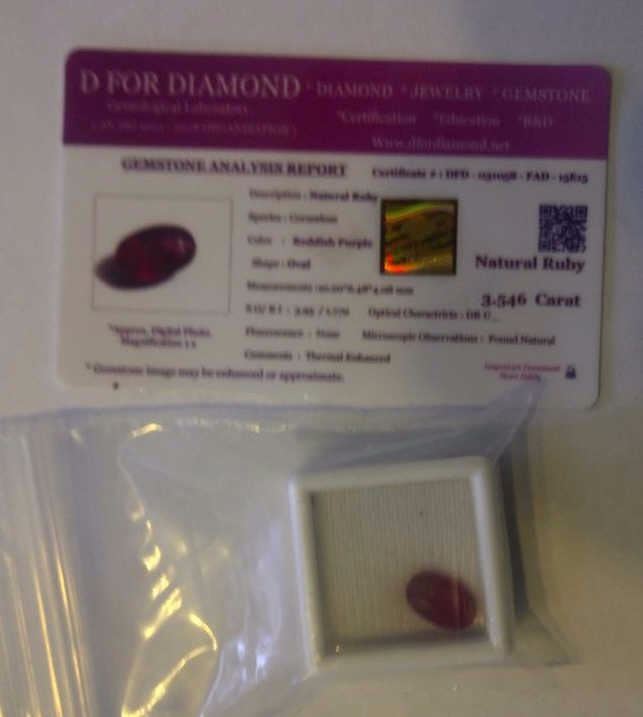 GEMSTONE - 3.546CT OVAL FACETTED REDISH PURPLE NATURAL RUBY - INCLUDES GEMSTONE CERTIFICATION CARD - RETAIL ESTIMATE ~$450