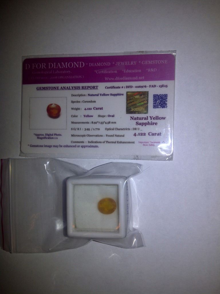 GEMSTONE - 4.12CT OVAL FACETTED YELLOW SAPPHIRE I - NCLUDES GEMSTONE ANALYSIS REPORT - APPROX. RETAIL $450
