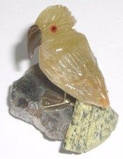 GEMSTONE *BABY COCKATOO* BIRD!! THIS BIRD IS ALL HANCARVED MADE OF DIFFERENT GEMSTONES INCLUDING ONYX/SERPENTINE/CHRYSACOLLA/MALACHITE!! BIRD IS STANDING ON A BEAUTIFUL QUARTZ ROCK AND STANDS 2 3/4" TALL!! ***Coin, Currency & All Items Listed in this auction - Grades, Conditions and Values are not Safe Deposit Coins LLC Responsibilty. Grades, Condition and Values are determined by Consigner(s) & Buyers ONLY