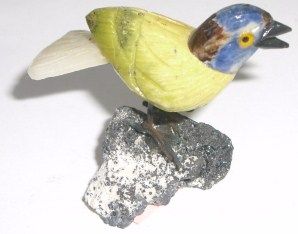 GEMSTONE BEAUTIFUL BIRD!! THIS BIRD IS ALL HANCARVED MADE OF DIFFERENT GEMSTONES INCLUDING ONYX/LAPIS/SERPENTINE/CHRYSACOLLA/MALACHITE & MORE!! BIRD IS STANDING ON A BEAUTIFUL FOOLS GOLD-PYRITE/MINERAL ROCK AND STANDS 2" TALL!! ***Coin, Currency & All Items Listed in this auction - Grades, Conditions and Values are not Safe Deposit Coins LLC Responsibilty. Grades, Condition and Values are determined by Consigner(s) & Buyers ONLY