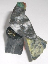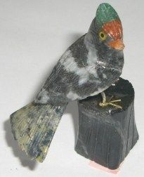 GEMSTONE BIRD!! THIS BIRD IS ALL HANCARVED MADE OF DIFFERENT GEMSTONES INCLUDING ONYX/SERPENTINE/CHRYSACOLLA/MALACHITE!! BIRD IS STANDING ON A BEAUTIFUL ONYX ROCK AND STANDS 2 3/4" TALL!! ***Coin, Currency & All Items Listed in this auction - Grades, Conditions and Values are not Safe Deposit Coins LLC Responsibilty. Grades, Condition and Values are determined by Consigner(s) & Buyers ONLY