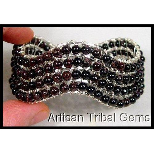 The cuff bracelet is finely constructed of sterling with a mass of 5mm genuine garnet stones. The cuff has a depth of 28mm (25mm=1") with a gram weight of 73.2.