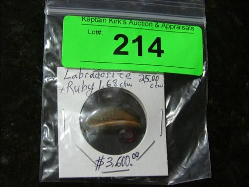 APPEARS TO BE LABRADOSITE & GORGEOUS OVAL CUT RED RUBY. THESE GEMSTONES, LIKE ALL ITEMS PRESENTED AT AUCTION, ARE PRESENTED WITH THE DESCRIPTIONS AND INFORMATION AS PROVIDED BY THE CONSIGNOR. THE AUCTIONEER DOES NOT REPRESENT THEIR DESCRIPTIONS OR VALUES TO BE NOTHING MORE THAT THOSE PROVIDED BY THE CONSIGNOR. THE AUCTIONEER DOES NOT REPRESENT THEM TO BE ACCURATE. PLEASE DO YOUR OWN DUE DILIGENCE, AND BID ACCORDINGLY. ALL SALES ARE FINAL, AND ALL ITEMS ARE SOLD AS IS, WHERE IS.
