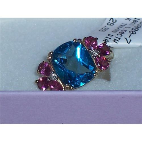 10kt 5.50ctw blue topaz pink tourmaline round diamond size 7