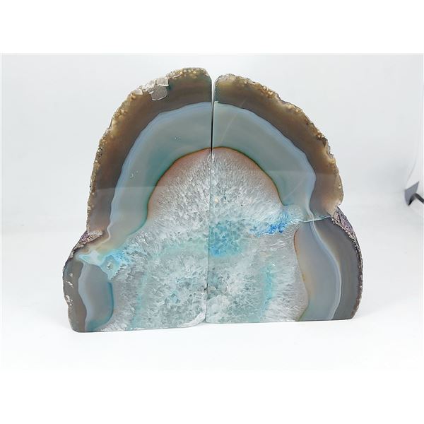 SUPERB BRAZILIAN AGATE & CRYSTAL BOOK-ENDS399 - SUPERB BRAZILIAN AGATE & CRYSTAL BOOK-ENDS