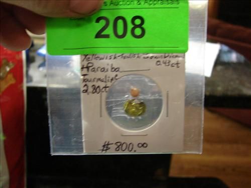 APPEARS TO BE PARAIBA TOURMALINE & YEIIOWISH REDISH- BROWN DIAMOND THESE GEMSTONES, LIKE ALL ITEMS PRESENTED AT AUCTION, ARE PRESENTED WITH THE DESCRIPTIONS AND INFORMATION AS PROVIDED BY THE CONSIGNOR. THE AUCTIONEER DOES NOT REPRESENT THEIR DESCRIPTIONS OR VALUES TO BE NOTHING MORE THAT THOSE PROVIDED BY THE CONSIGNOR. THE AUCTIONEER DOES NOT REPRESENT THEM TO BE ACCURATE. PLEASE DO YOUR OWN DUE DILIGENCE, AND BID ACCORDINGLY. ALL SALES ARE FINAL, AND ALL ITEMS ARE SOLD AS IS, WHERE IS.