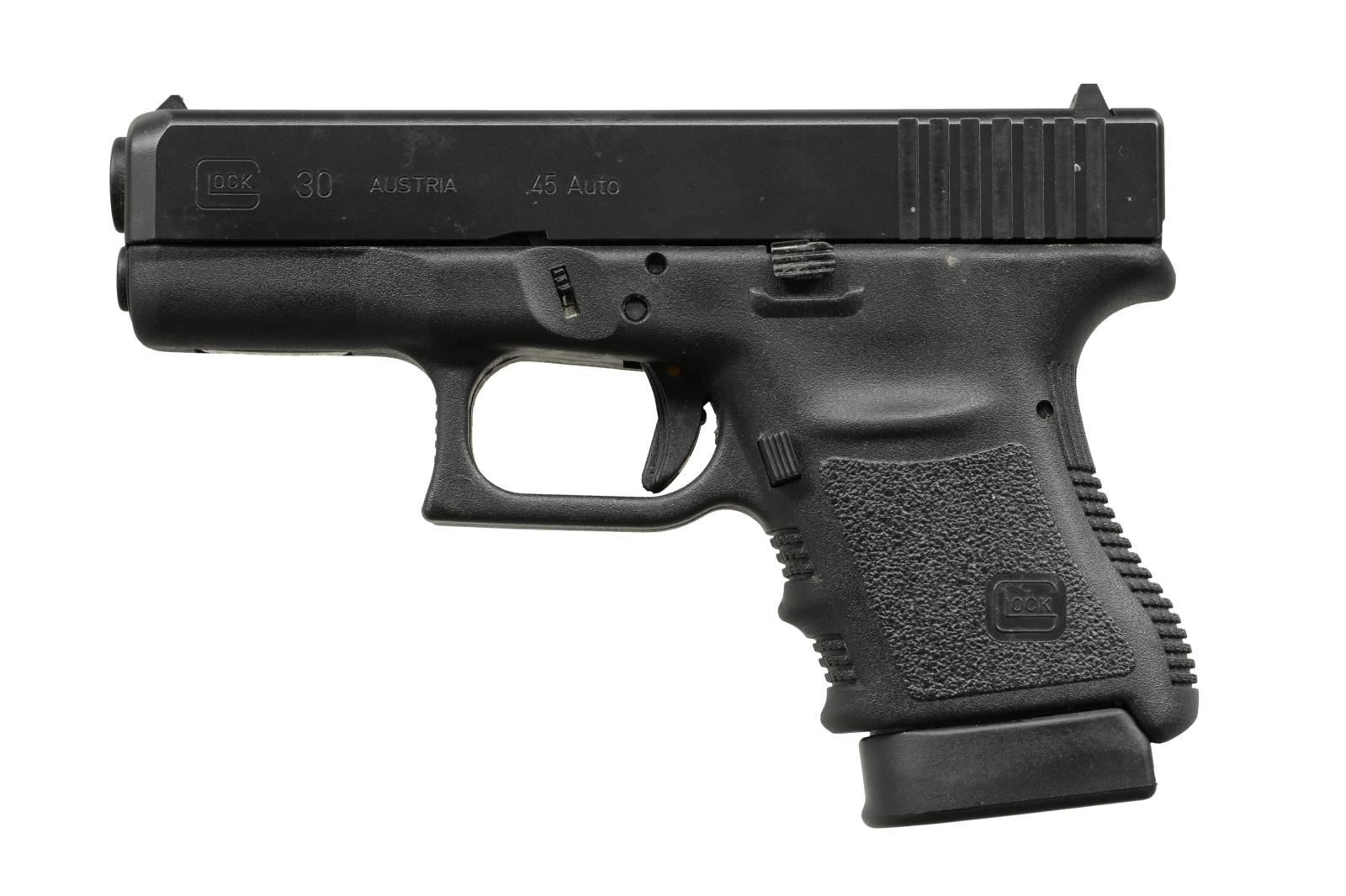 Cal. 45 ACP. S# EEC229US. Sub-compact double stack pistol w. 3.77" bbl. Black polymer frame w/ thumb rest & stipple grip; no accessory rail. 3 Dot sights. MAGS:1 - 10 rd. w/ extension. CONDITION: near excellent metal & frame w/ a few marks & pinprick oxidation. Near excellent bore. (23-1350/MD). MODERN. $250-350
