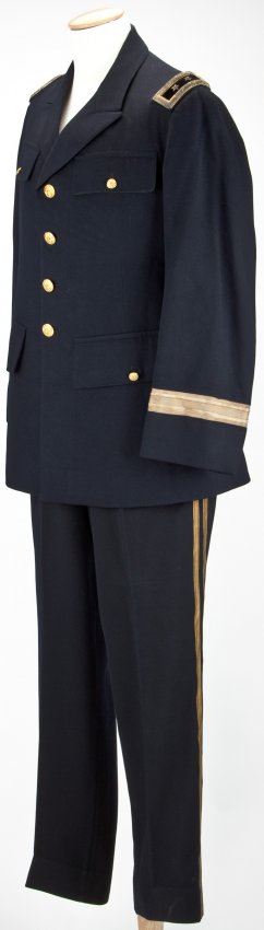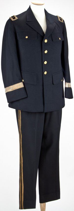 Fine pair of dress uniforms once belonging to Gen. Robert C. Richardson, Jr. while he served as Commandant of Cadets at West Point starting in 1929. Present is Richardson's heavy wool dress tunic and trousers, shoulder straps bearing two stars and denoting his rank as lieutenant colonel. Matching gold metal thread rank insignia are applied at the end of each sleeve. The tunic bears four straight-flap buttoned pockets and a four button front closure, and all of the original buttons are present. Richardson's matching wool dress trousers bearing two gold metallic thread stripes are also present. The tunic bears the original label from "The Cadet Store" at West Point. Also present is Richardson's dress mess jacket with tails, sleeve ends bearing appropriate lieutenant colonel's insignia in bullion and metallic thread, two rear and six front buttons all original to the garment. Maker's label within from "Rogers-Peet Company New York - Boston". Both uniforms are in spectacular condition, with no damage nor mothing evident. Richardson graduated from the U.S. Military Academy and in 1906 and again in 1914 he returned to teach English there. He was appointed Commandant of Cadets at the West Point and served from 1929 until he was replaced by Gen. Simon Bolivar Buckner, Jr. in 1933. Richardson also headed the Department of Tactics.