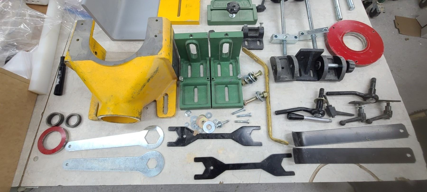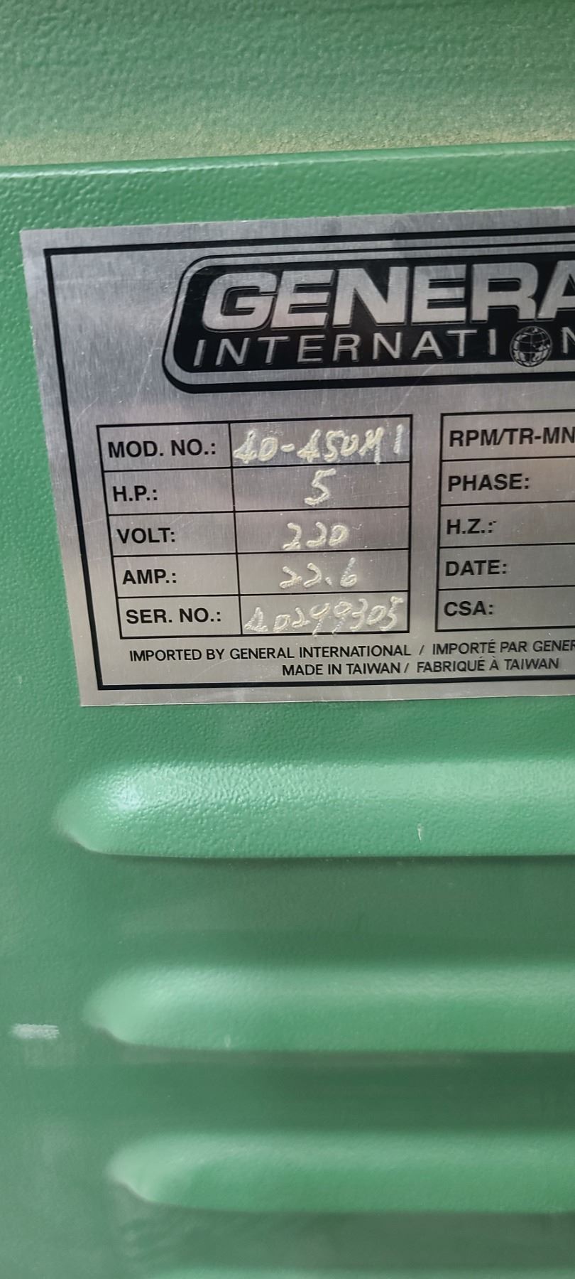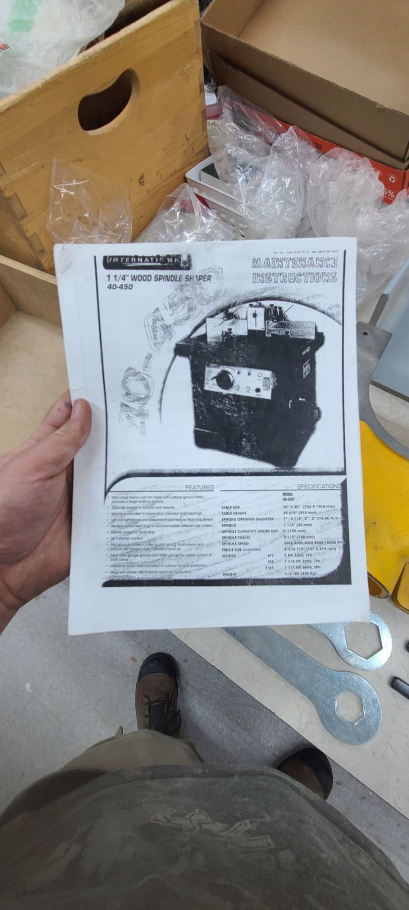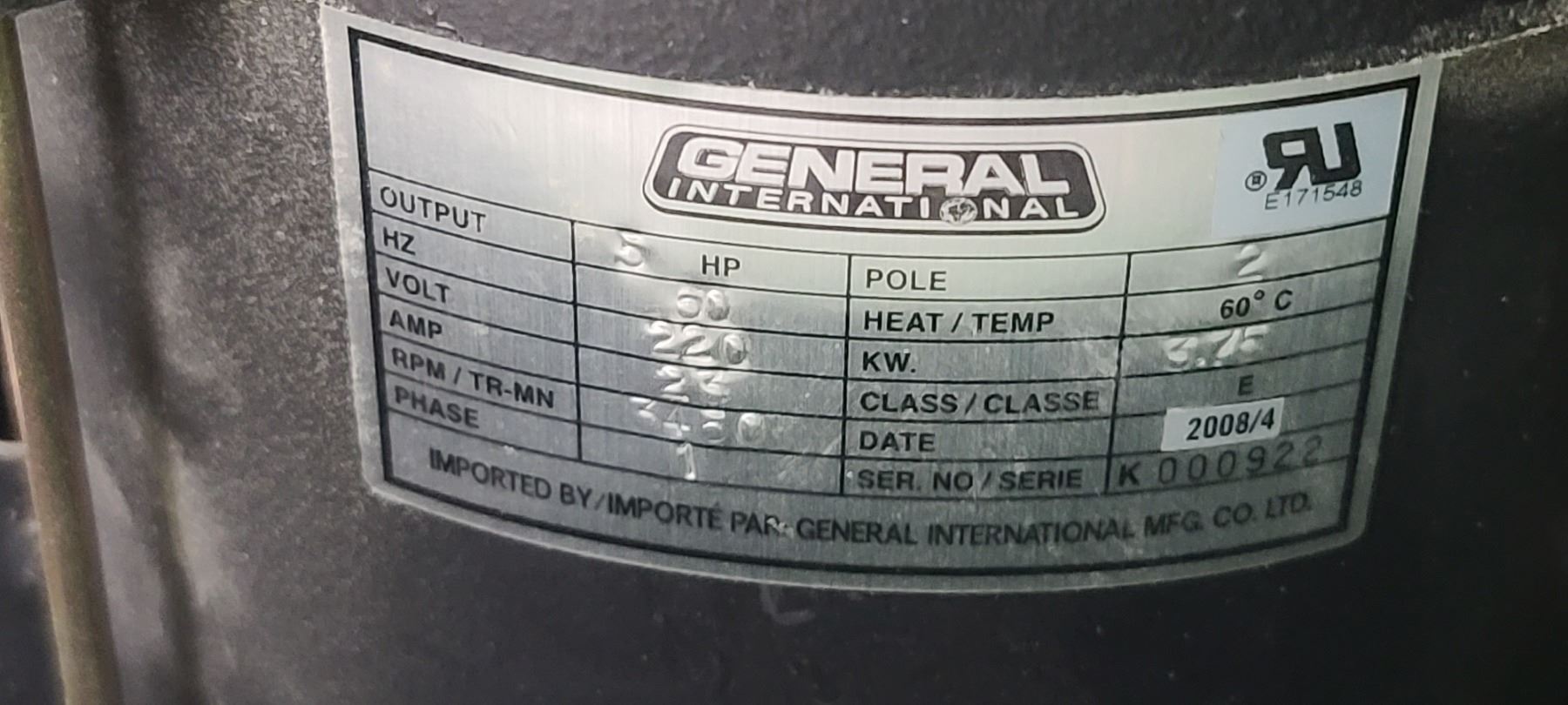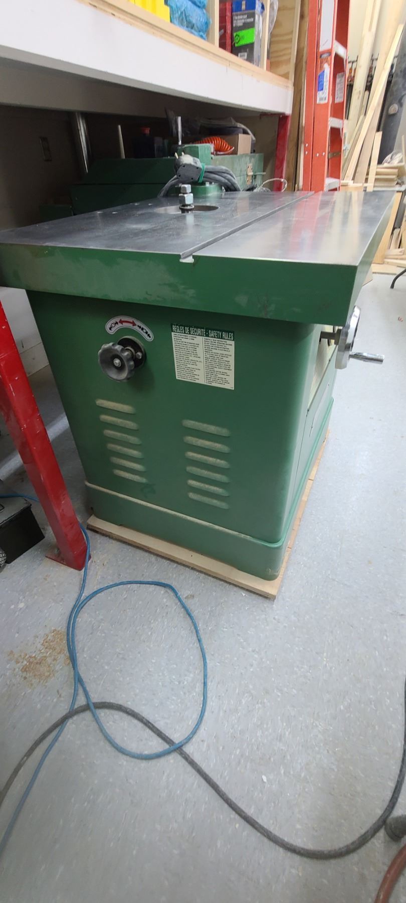 GENERAL INTERNATIONAL 1 1/4" WOOD SPINDLE SHAPER MODEL 40-450 - SINGLE PHASE- 220V - ACCESSORIES TO THIS ARE LOTTED IN LOT 222 TO 223 SOLD SEPERATELY