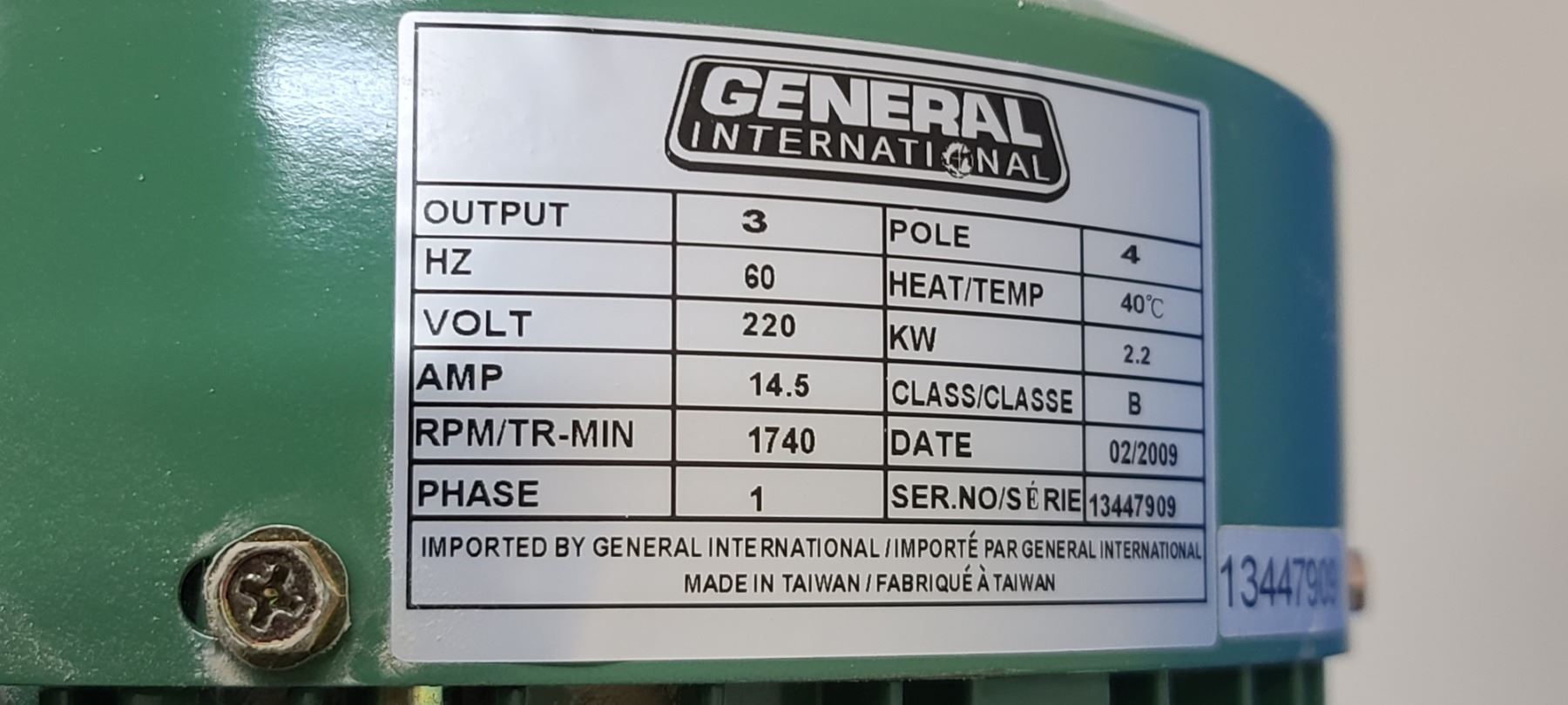 3HP - 220V - SINGLE PHASE - RPM 1740 – 14.5AMP