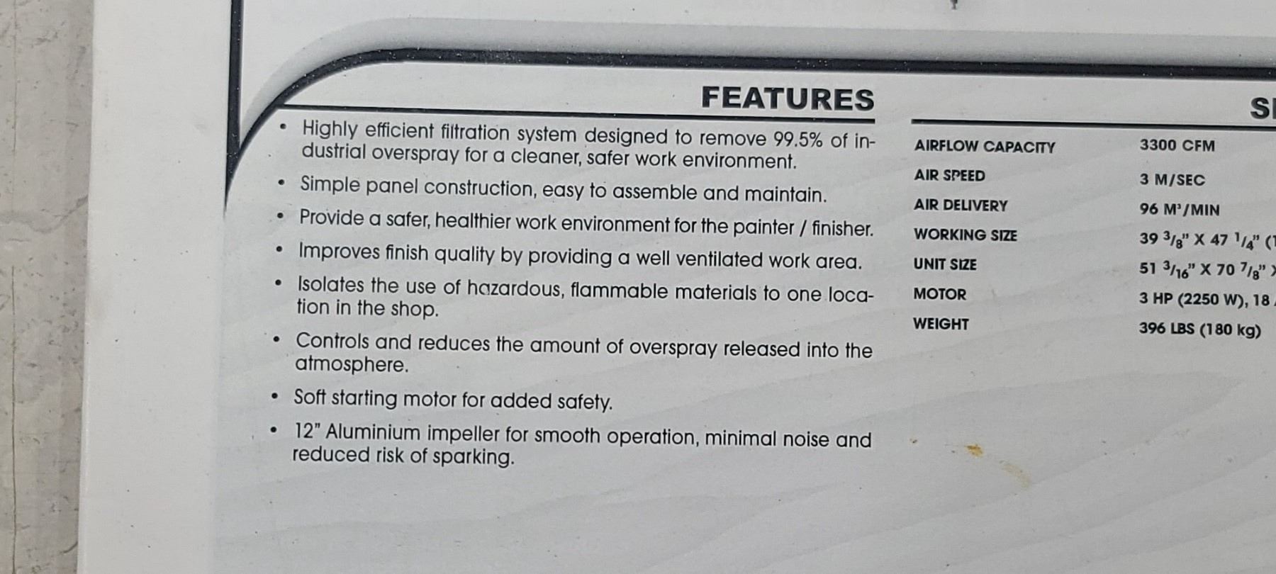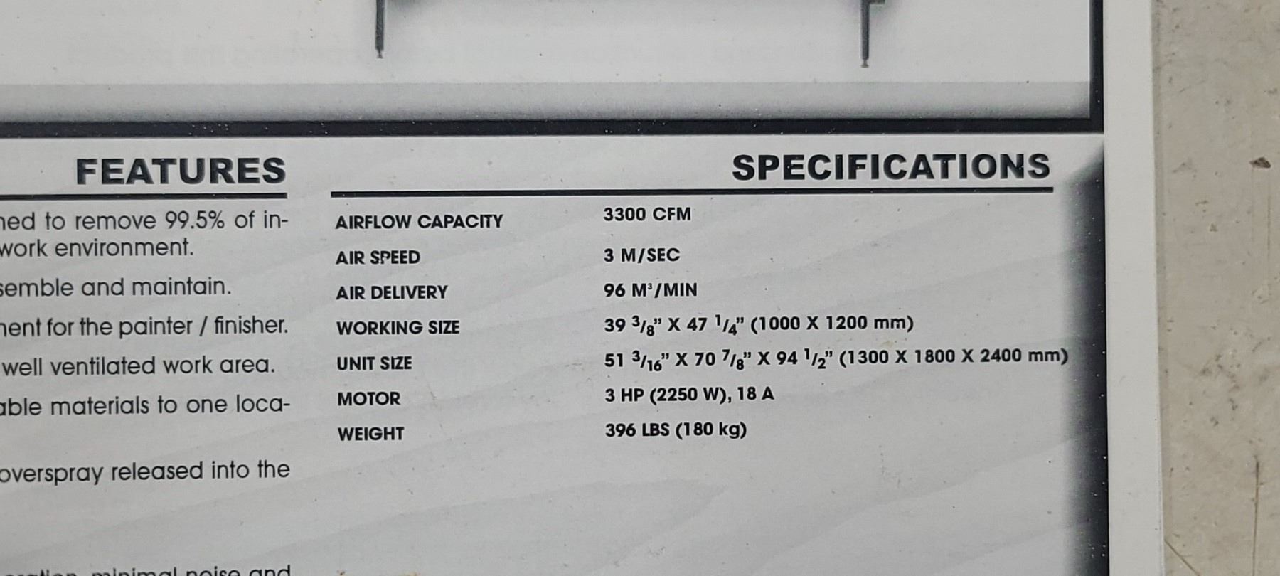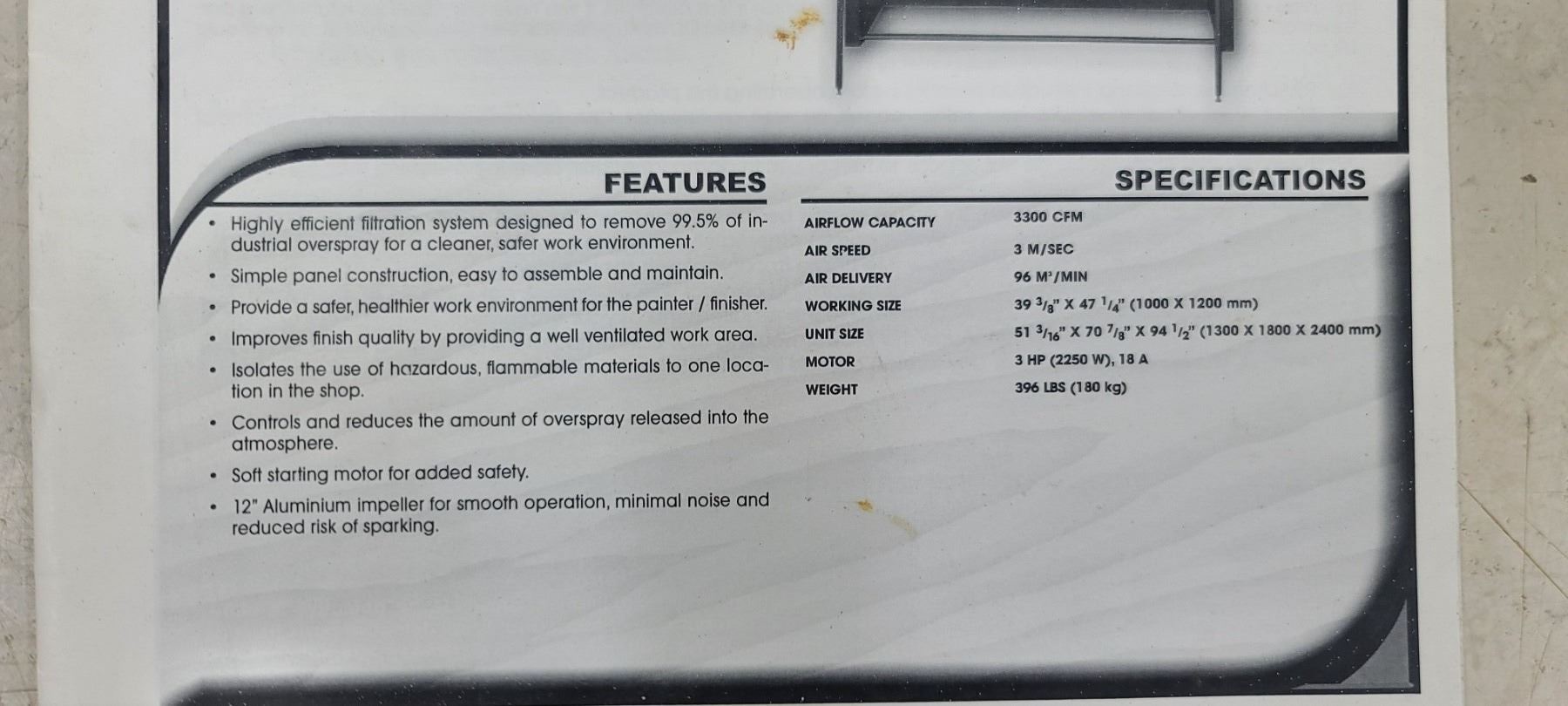 CLEAN UNIT – FILTERS HAVE BEEN CHANGED AND COMES WITH SIX NEW FILTERS AND 12” “T” FOR OIL OR WATER BORN PAINTS