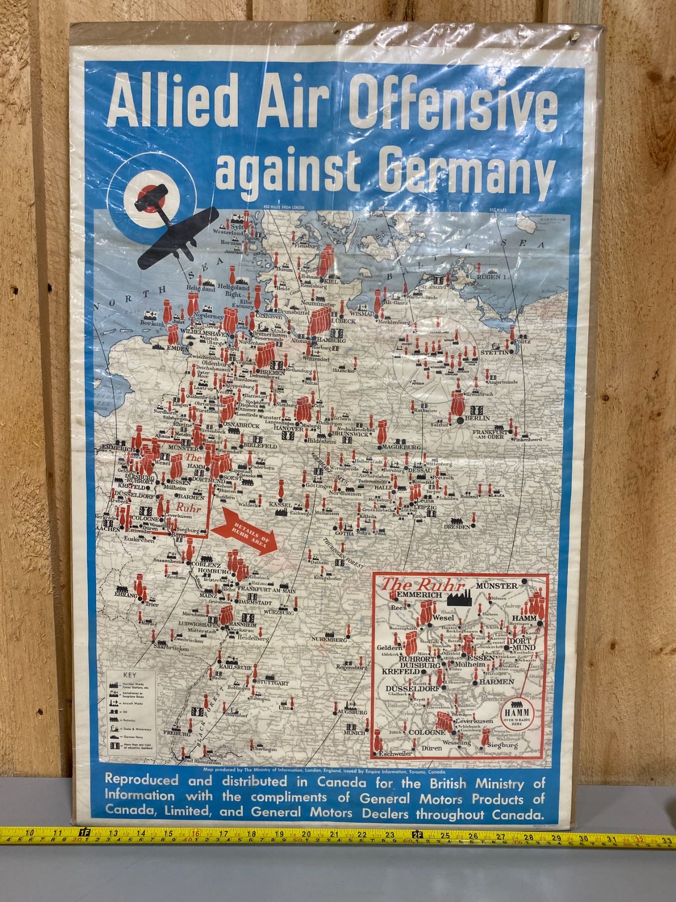 THIS WWII POSTER MARKS BOMB DROP SITES IN GERMANY.