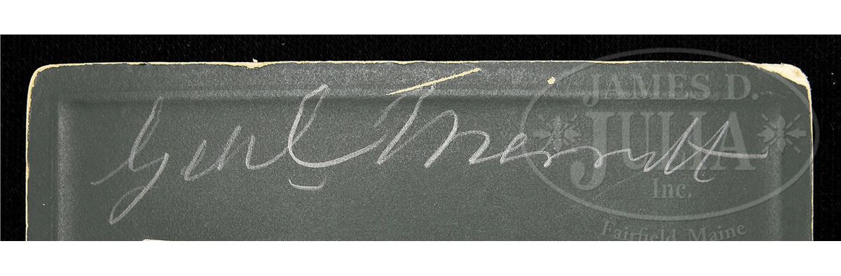 8. INTEREST AND DEFAULT: Payment is due upon receipt. If the buyer’s invoice is not paid in full within 15 days of the auction, James D. Julia, Inc. has the right and will charge the buyer’s credit card of record on file for the total invoice amount. Interest will be charged on all balances not paid at the rate of 1-1/2% monthly (18% APR) effective 15 days from the date of purchase/auction. Should the buyer not comply with any of the Conditions of Sale, the damage recoverable from the defaulter shall include any loss arising on the resale of the lot, together with the charges and expenses in respect of both sales as well as any legal or collection fees incurred. James D. Julia, Inc. shall hold any money deposited in partial payment on account of any liability of the defaulted item.