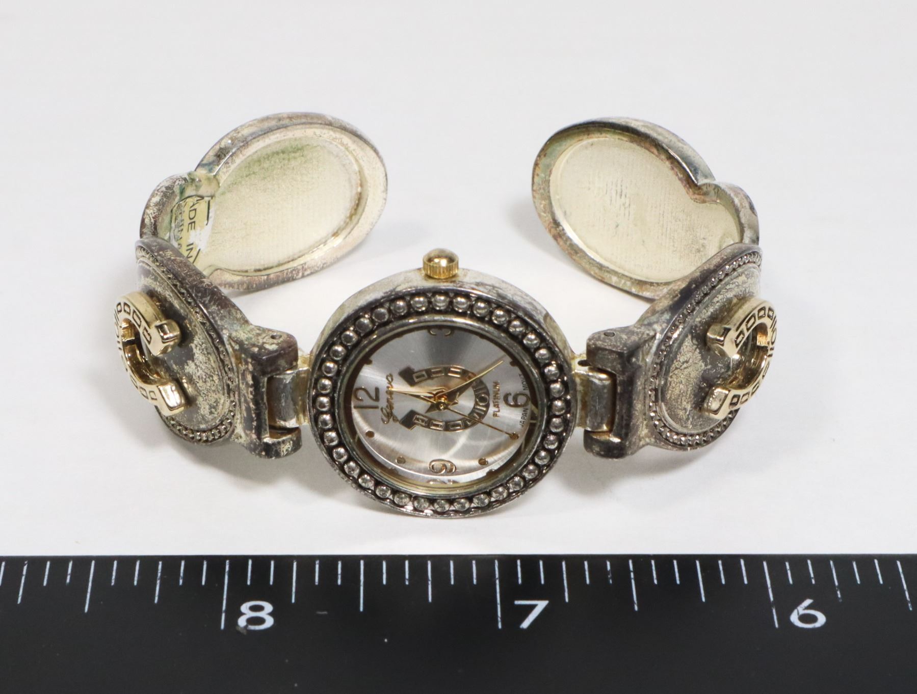 GENEVA PLATINUM RODEO DESIGN CUFF BRACELET WATCH
