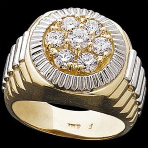 This Two Tone Gents ring is VERY impressive! It is 14k Yellow Gold and White Gold and it features 7 SPARKLING Diamonds = 1.50 CARATS!! The Diamonds are all well matched, I1 Clarity and H Color. The Design of this ring is very handsome - and it IS in Mint condition! It is a size 10 and I can resize it for you.
