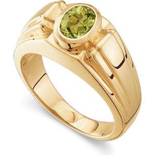 14k Yellow Gold Gents Ring featuring an Oval GENUINE PERIDOT = 1.50 CTS! This handsome ring is a Size 10 and it can be resized either larger or smaller. The Peridot is the Birthstone for August.
