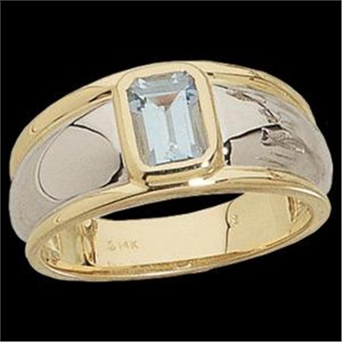 14k '2 tone' Gents ring in Yellow and White Gold, featuring a GENUINE AQUAMARINE = ONE CARAT! The ring is a Size 10 and it can be resized both larger and smaller. The Aquamarine is the Birthstone for March.