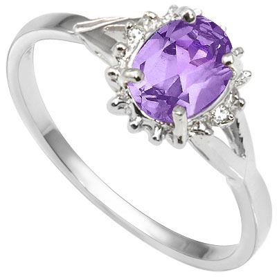 GENUINE 0.50 AMETHYST AND 0.01 DIAMOND PLATINUM PLATED **|**|** GENUINE 0.50 AMETHYST AND 0.01 DIAMOND PLATINUM PLATED .925 STERLING SILVER RING