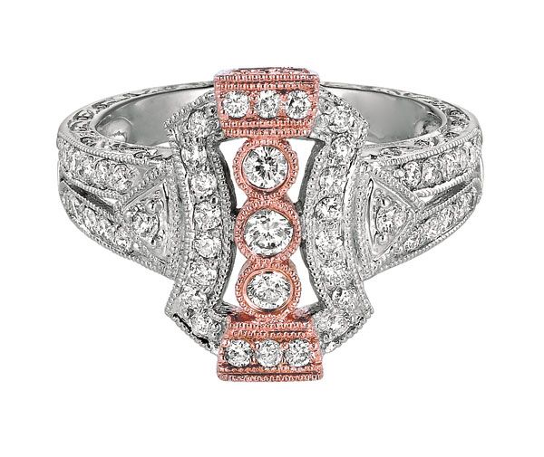 GENUINE 0.65 CTW DIAMOND RING 14K GOLD **|**|** GENUINE 0.65 CTW DIAMOND RING 14K GOLD; MAINSTONE DIAMOND; DIAMOND COLOR G-H, CLARITY SI; METAL 14K WHITE AND PINK GOLD ; MSRP: $5700