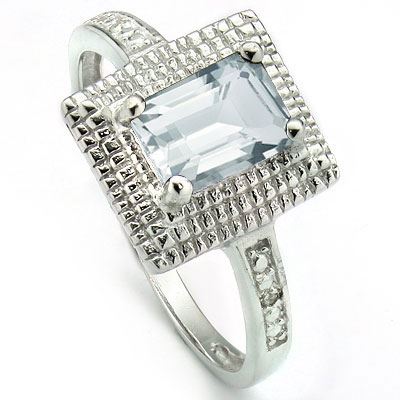 GENUINE 0.86 CTW AQUAMARINE AND 0.01 CTW PLATINUM PLATE **|**|** GENUINE 0.86 CTW AQUAMARINE AND 0.01 CTW PLATINUM PLATED .925 STERLING SILVER RING