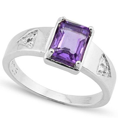 GENUINE 0.96 CTW AMETHYST AND DIAMOND PLATINUM PLATED . **|**|** GENUINE 0.96 CTW AMETHYST AND DIAMOND PLATINUM PLATED .925 STERLING SILVER RING AMETHYST WEIGHT: 0.96 DIAMOND WEIGHT: 0.012